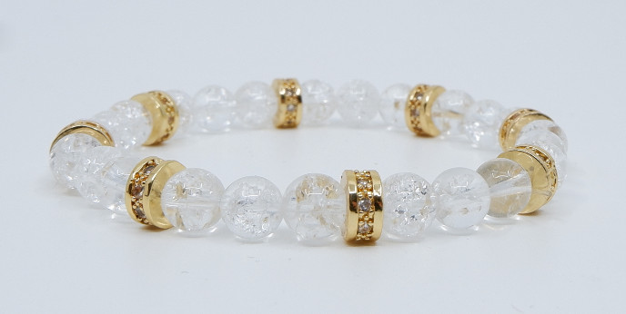 Mõraline kvarts on tuntud oma võimsa energia poolest, mis aitab tasakaalustada keha ja meelt ning tõsta vaimset selgust ja keskendumisvõimet. Kuldsed metallhelmed lisavad käevõrule veelgi glamuursema ja elegantsema ilme, mis tõstab kandja enesekindlust ja positiivset energiat.